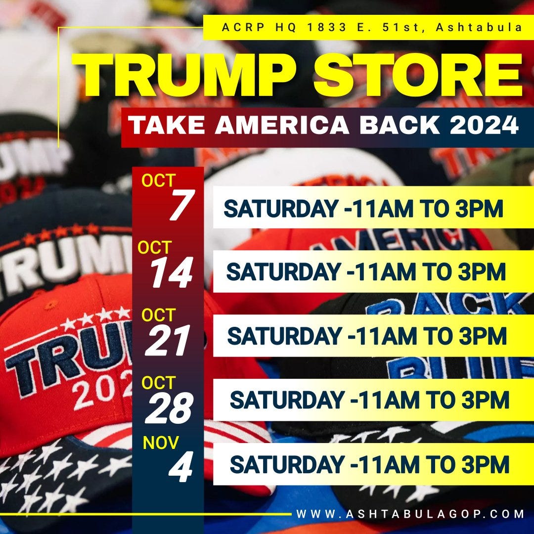 Tonight! (Pick up your Vote No on Issue1 yard sign) October 5th - Issue 1 Town Hall - Bring your questions about November's ballot Issue 1 to a live Town Hall at 7:00 PM at Austinburg Town Hall, 2794 Rt. 307.