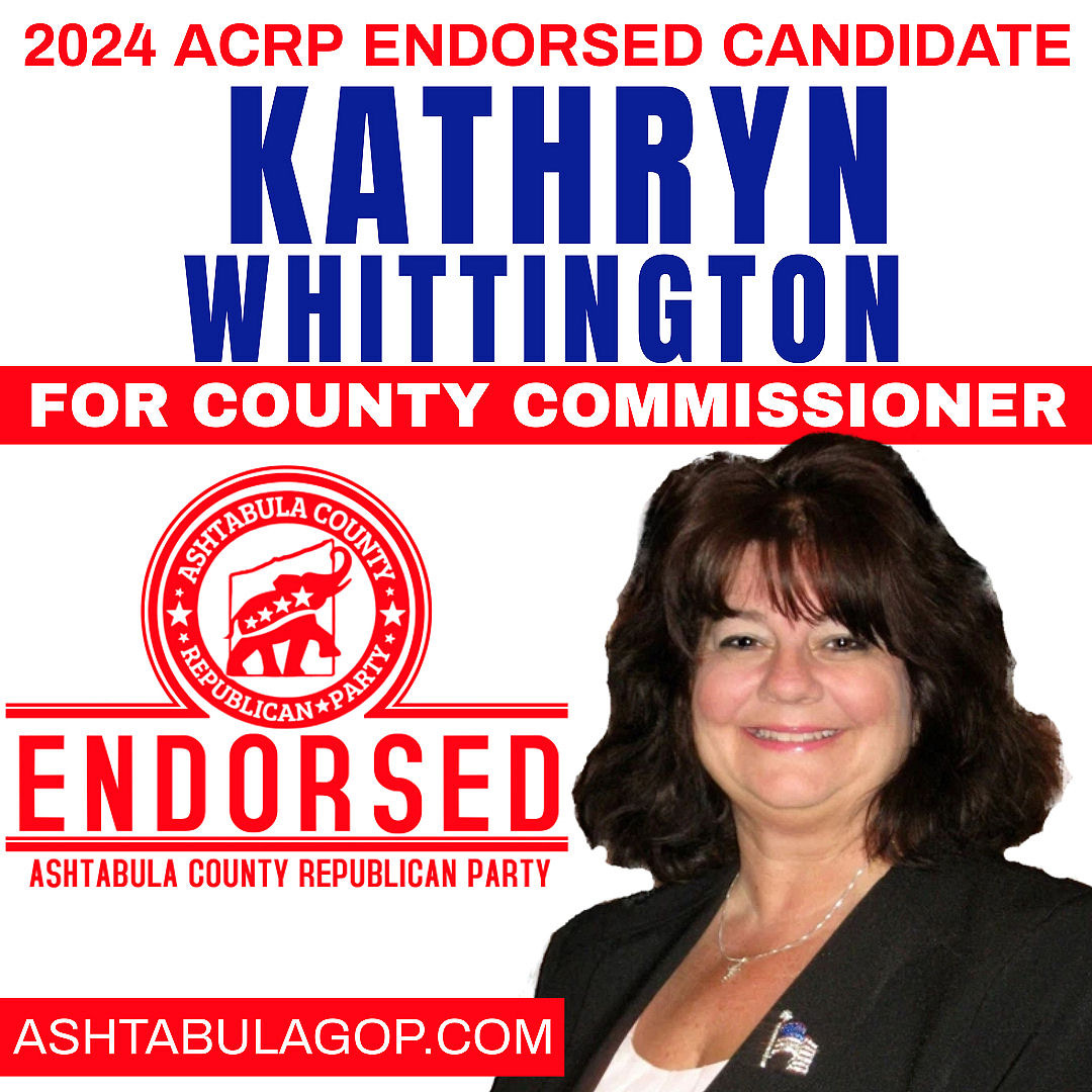 Kathryn Whittington, is the first Republican woman to be elected to one of the Ashtabula County Commissioner seats. She believes in Ashtabula County’s future and will continue to advocate to move it forward.