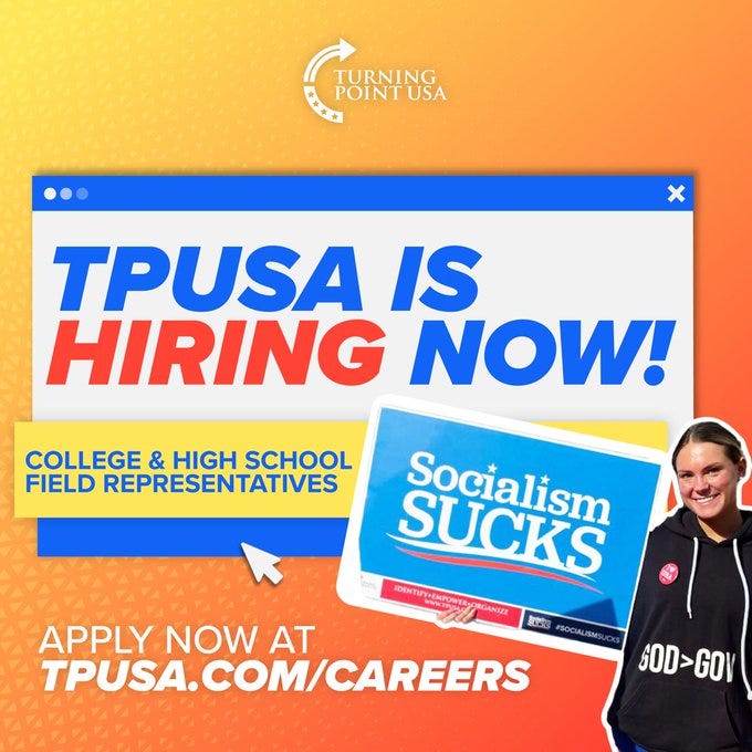 Like a challenge? How about SAVING America? 😎 Well, TPUSA is HIRING for Field & Headquarters Positions