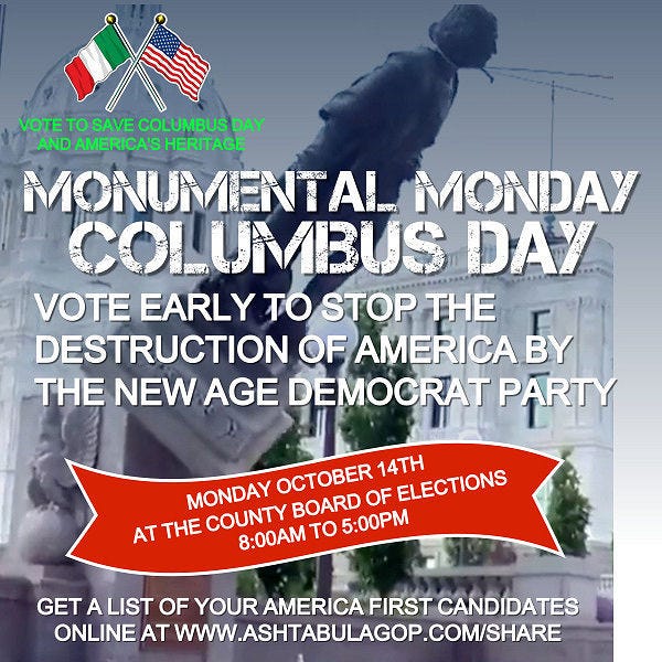 The Ashtabula County Board of Elections will be open on Columbus Day from 8AM to 5PM. The Ashtabula County Board of Elections is located at 8 W. Walnut in Jefferson (next door to the BMV)