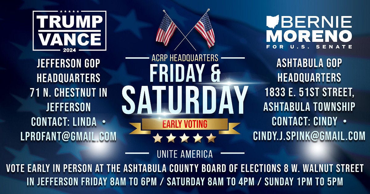 Deck out your vehicle or not, it doesn’t matter as long as your horn works! Show your support and remind others that President Trump and JD Vance are ready to Make America Great Again. BRING FRIENDS AND CELEBRATE THE RETURN OF AMERICAN VALUES! Details at www.ashtabulagop.com/TT3