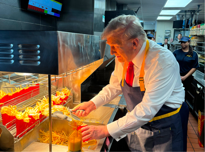 Over the weekend, Trump had a temporary "employment" at a Pennsylvania McDonald's that was organized locally. He worked the drive-thru and fryer on Sunday at a franchise in Bucks County.