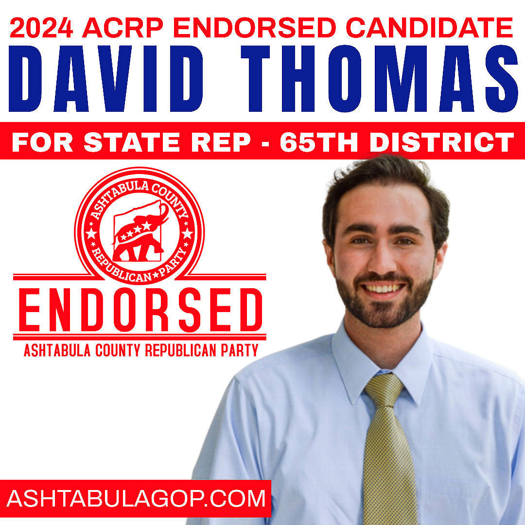 Congratulations David Thomas for State Rep. 65th District on being endorsed by the Ashtabula County Republican Party to be our next State Rep. for the 65th Ohio House District!
