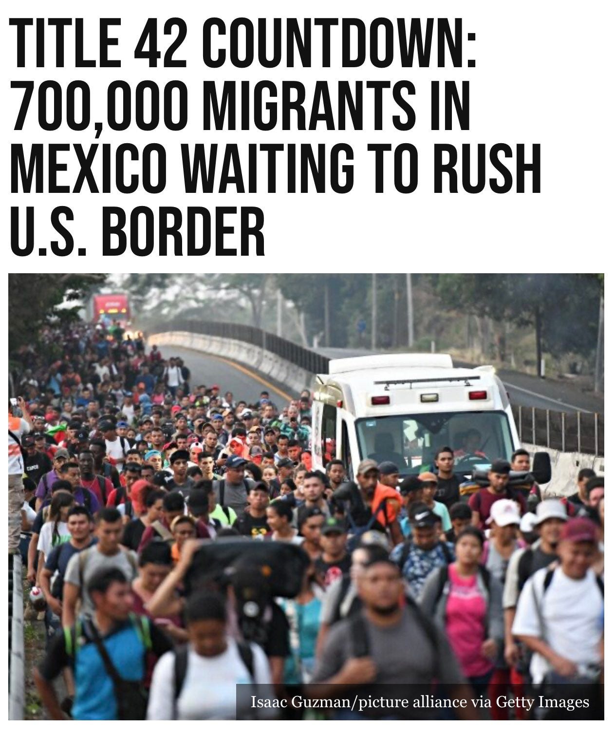 Tiitle 42 ends on Thursday. There are currently 700,000 migrants waiting on the Mexican side of the border for Title 42 to expire so they can illegally enter the U.S. We can't stop this freight train, so instead, we'll focus on using it to inflict as much political damage on Democrats as possible. Stay tuned, for the strategy on Wednesday.