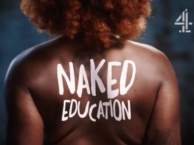 Is MSM Hiding this?- This week, Channel 4, the left-leaning publicly owned, commercially funded network, began its six-part series Naked Education hosted by Anna Richardson, known for hosting a variety of other body-based programs including a naked dating show on the same network.